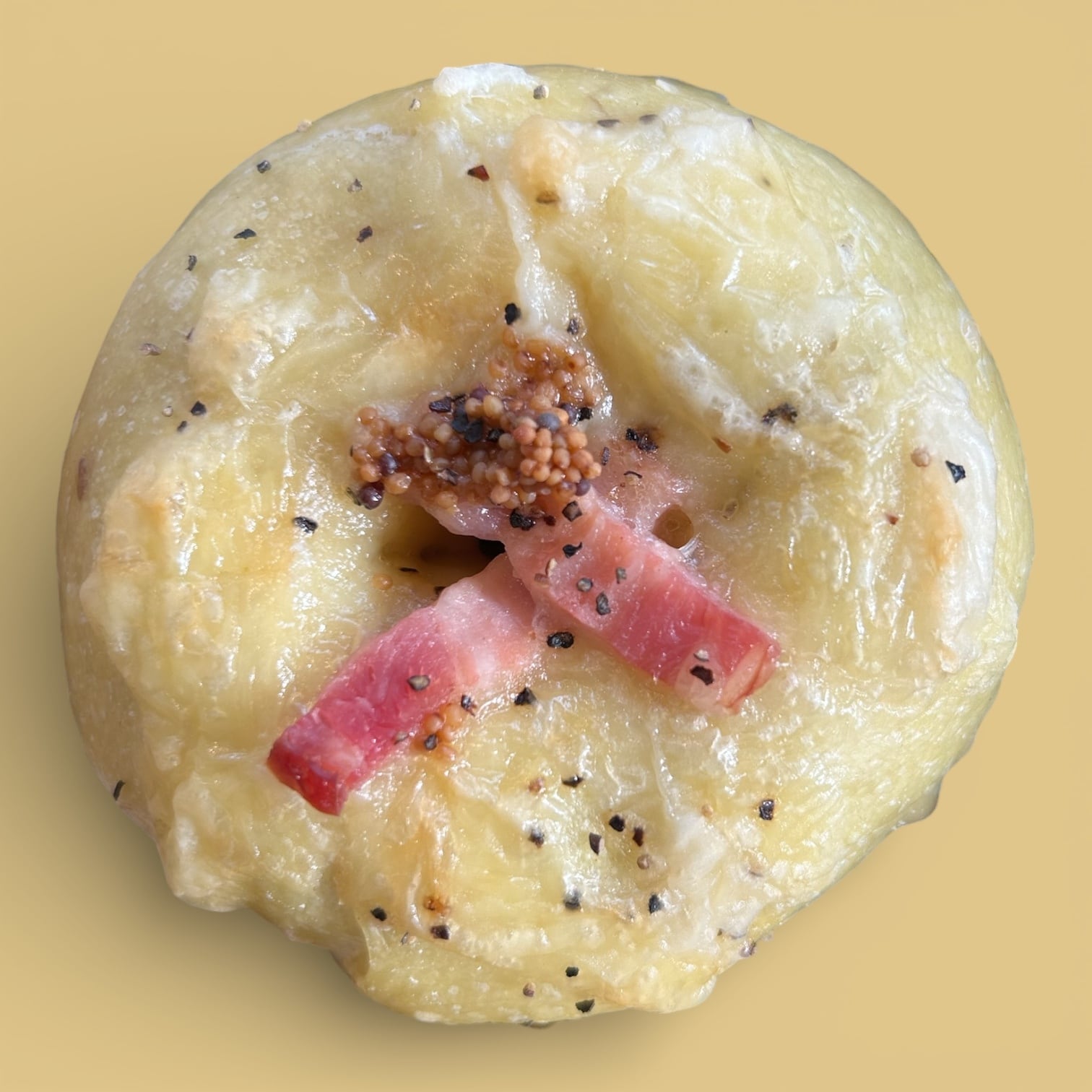 自家製粒マスタード、蜂蜜、ベーコンとチーズの食事系。